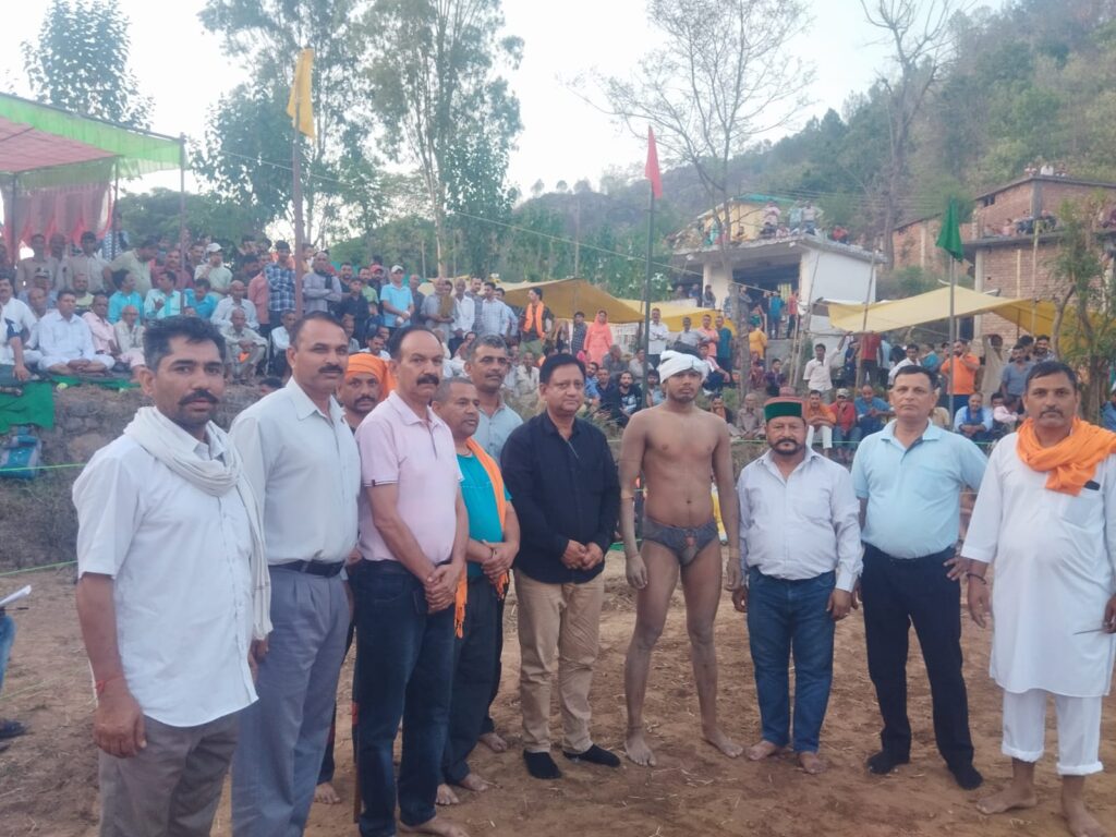 भियुंखरी पंचायत मेआयोजित दंगल में बतौर मुख्य अतिथि पहुंचे राजेन्द्र ठाकुर।