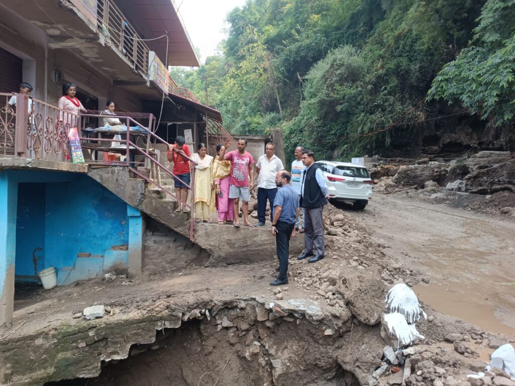 वीरवार को हुई बारिश ने एक बार पुनः गम्बर पुल के वाशिंदों की नींद उड़ा दी थी।बारिस से जंहा एक मकान के नीचे से कुछ जमीन बह गई ,तो गम्बर पुल बने पुल भी जर्जर होने लग गया है।सोमवार को इसी जगह बादल फटने से मलवा पत्थरो सहित सड़क पर आ गया था व तीन गाड़ियों को क्षति पहुंची थी व एक होटल की दीवारें बह गई थी। वीरवार रात्री में हुई बारिश में एक बार फिर वही मंजर था,एक बार फिर भारी मलबा पत्थरो के साथ पुल पर आ गया,जिसे करीब 9 घण्टो के बाद लोक निर्माण विभाग ने जेसीबी से हटाया था।आज सीपीएस संजय अवस्थी ने मौके पर पहुंच कर प्रभावितों का कुशल क्षेम जाना व विभागीय अधिकारियों को पानी की निकासी का उचित प्रबंध करके पुल व मकानों को ओर नुकसान से बचाव सम्बन्धी निर्देश दिये।इस दौरान एसडीएम अर्की यादविंदर पॉल सहित लोक निर्माण विभाह के अधिकारी,कर्मचारियों सहित स्थानीय लोग मौजूद रहे।