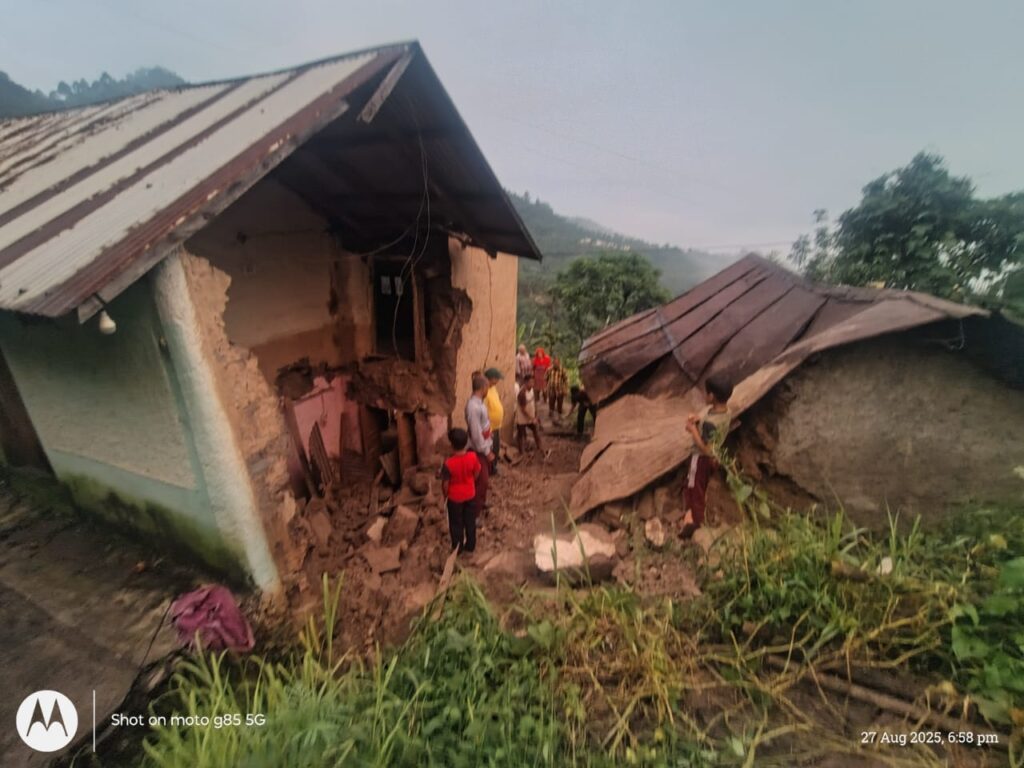 भूमती पंचायत के बाजिवण गाँवो में तीन दिन से लगातार हो रही बारिश से मकान ओर साथ लगती गौशाला को भारी नुकसान पहुंचा है। मकान मालिक विद्या सागर ने बताया कि वो साथ लगते कमरे में आराम कर रहे थे कि लगभग साढ़े पांच बजे जोर से कुछ गिरने की आवाज आई।जिस से वो एकदम बाहर आये तो देखा कि मकान का एक हिस्सा टूट कर गिर गया है व साथ लगती गौशाला को भी काफी नुकसान पहुंचा। वहीं आस पड़ोस के लोगो ने पशुशाला गिरने से हुए नुकसान व दोबारा गिरने की शंका के चलते पशुओं को वैकल्पिक जगह रख दिया है ताकि किसी भी पशु को कोई जानी हानि न पहुंचे