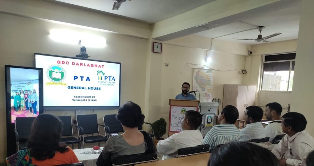 राजकीय महाविद्यालय दाड़लाघाट में सत्र 2025-26 की पीटीए अध्यापक अभिभावक संघ की नई कार्यकारिणी का गठन किया गया। प्राचार्या डॉ रुचि रमेश ने सभी अभिभावकों का विधिवत रूप से स्वागत करते हुए महाविद्यालय के बीते सत्र की उपलब्धियों का विस्तृत विवरण दिया। इस मौके पर अध्यापक अभिभावक संघ के कॉलेज प्रभारी सहायक आचार्य पुनीत ठाकुर ने पीटीए फंड का विस्तृत विवरण अभिभावकों के समक्ष प्रस्तुत किया। नई कार्यकारिणी का गठन सभी अभिभावकों की सर्वसहमति से किया गया। अध्यापक अभिभावक संघ की नई कार्यकारिणी में नरेंद्र को अध्यक्ष चुना गया। उपाध्यक्ष हेमराज,सचिव अक्षय कुमार,सहसचिव चेतराम व कोषाध्यक्ष हरदेव को चुना गया। इस कार्यकारिणी में सदस्य रूप में रीना देवी,सविता व मुकेश देवी का चयन किया गया। प्राचार्या डॉ रुचि रमेश ने नई कार्यकारिणी के सभी सदस्यों को बधाई देते हुए महाविद्यालय के विकास कार्यों में सहयोग देने का आग्रह किया। प्राचार्या ने अपने वक्तव्य में कहा की बिना अभिभावकों के सहयोग से महाविद्यालय का सर्वांगीण विकास संभव नहीं हो सकता। इस अवसर पर सभी प्राध्यापकगण मौजूद रहे।