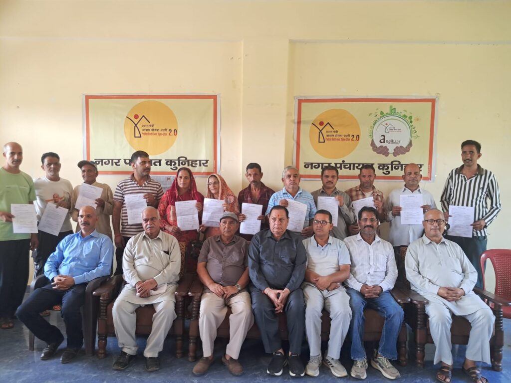 प्रधानमंत्री आवास योजना शहरी के अंतर्गत प्रस्तावित कुनिहार नगर पंचायत के 14 लाभार्थियों को मकान बनाने के लिए दिए गए स्वीकृति पत्र ।