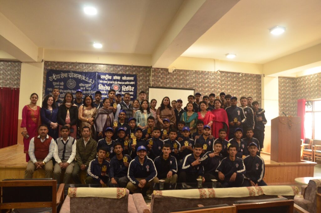 शिविर के समापन समारोह की मुख्य अतिथि श्रीमती माया चौहान रहीं, जिन्होंने स्वयंसेवकों के उत्साह एवं सामाजिक सेवा के प्रति समर्पण की सराहना की। उन्होंने छात्रों को जीवन में अनुशासन, सहयोग एवं पर्यावरण संरक्षण के प्रति जागरूक रहने का संदेश दिया। मुख्य अतिथि  माया चौहान, NSS नोडल अधिकारी, हिमाचल प्रदेश के करकमलों द्वारा किया गया।