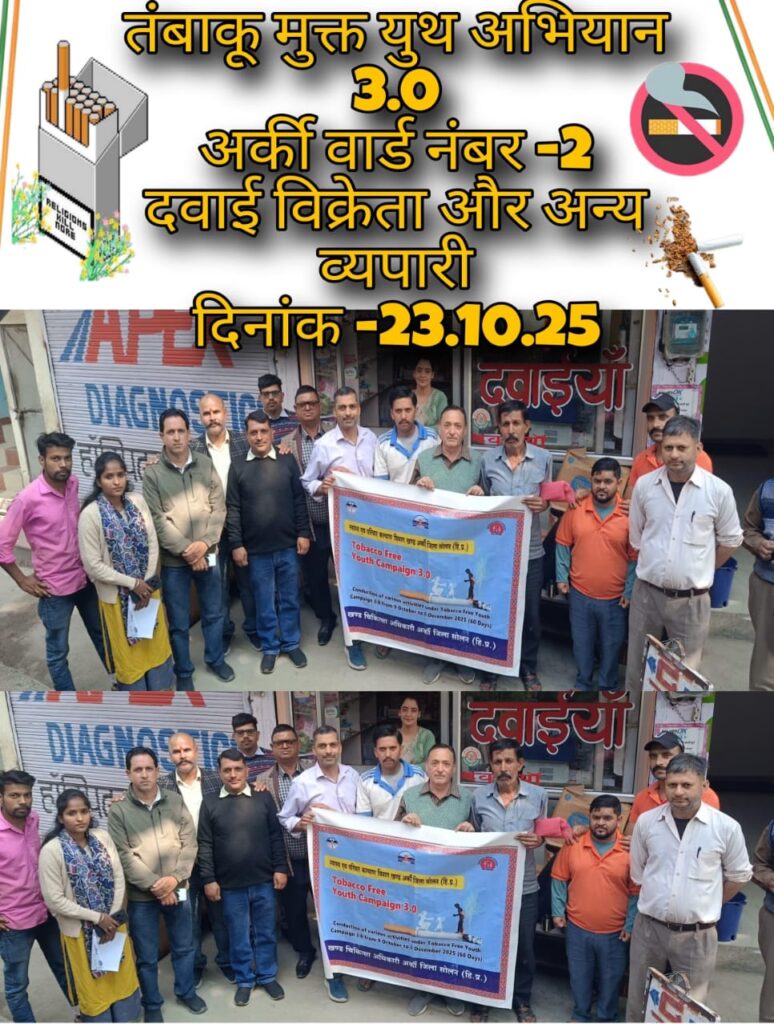 कार्यक्रम में दवा दुकानदारों और अन्य स्थानीय दुकानदारों ने बड़ी संख्या में भाग लिया। सभी ने सामूहिक रूप से शपथ ली कि वे न तो स्वयं तंबाकू का सेवन करेंगे और न ही किसी को इसके उपयोग के लिए प्रेरित करेंगे। इसके साथ ही सभी ने यह भी संकल्प लिया कि वे अपने क्षेत्र को “तंबाकू मुक्त क्षेत्र” बनाने में सक्रिय भूमिका निभाएँगे।