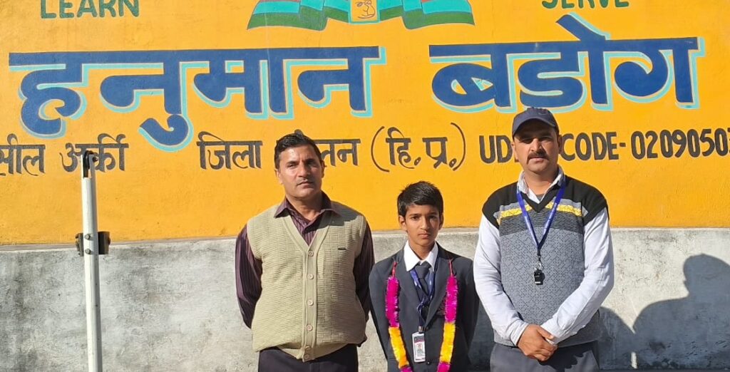 राजकीय उच्च विद्यालय हनुमान बड़ोग में छात्र दीक्षान्त के सम्मान में प्रातःकालीन सत्र के दौरान एक सूक्ष्म सम्मान समारोह आयोजित किया गया। विद्यालय के शारीरिक शिक्षा अध्यापक जय प्रकाश ने जानकारी दी कि दीक्षान्त ने राज्य स्तरीय स्कूली खेलकूद प्रतियोगिता में खो-खो खेल में जिला सोलन का प्रतिनिधित्व किया और उत्कृष्ट प्रदर्शन करते हुए पहले तीन स्थानों में स्थान प्राप्त किया। विद्यालय में वापसी पर दीक्षान्त का हार पहनाकर अभिनंदन किया गया। इस अवसर पर विद्यालय के मुख्याध्यापक पी. सी. बट्टू ने छात्र दीक्षान्त और उनके कोच जय प्रकाश को शुभकामनाएं दीं तथा अन्य विद्यार्थियों से उनसे प्रेरणा लेने का आह्वान किया। उन्होंने कहा कि दीक्षान्त न केवल खेलों में बल्कि पढ़ाई में भी ईमानदारी और लगन से कार्य करता है। कार्यक्रम में विद्यालय प्रबंधन समिति के अध्यक्ष हेमचंद शर्मा ने भी छात्र और विद्यालय को बधाई दी। इस अवसर पर सी.एच.टी. रामचंद सहित विद्यालय के सभी अध्यापक उपस्थित रहे।