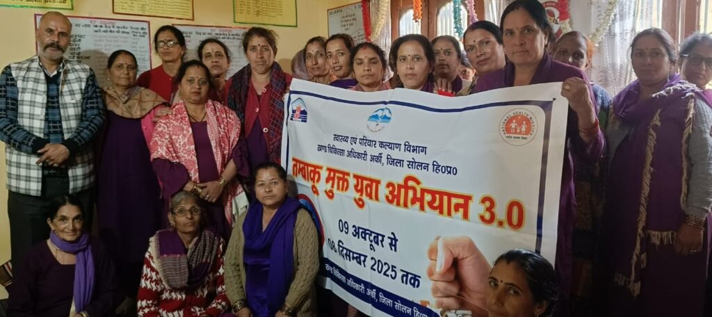तंबाकू मुक्त युवा अभियान 3.0 के अंतर्गत मंगलवार को दाड़लाघाट में एक जागरूकता कार्यक्रम का आयोजन किया गया। कार्यक्रम की अध्यक्षता ब्लॉक मेडिकल ऑफिसर अर्की, डॉ. मुक्ता रस्तोगी ने की, जबकि संचालन महिला एवं बाल विकास विभाग अर्की की पर्यवेक्षक उषा ठाकुर द्वारा किया गया। कार्यक्रम में आंगनवाड़ी कार्यकर्ताओं एवं अन्य महिलाओं की सक्रिय भागीदारी रही। कुल 45 महिलाओं ने इस कार्यक्रम में हिस्सा लिया। मुख्य वक्ता के रूप में उपस्थित काउंसलर, एचआईवी काउंसलिंग एवं टेस्टिंग सेवाएं, सिविल अस्पताल अर्की डॉ. विजय कुमार शांडिल ने प्रतिभागियों को तंबाकू सेवन के दुष्प्रभावों और कोटपा अधिनियम 2003 के बारे में विस्तार से जानकारी दी। उन्होंने कहा कि तंबाकू का सेवन न केवल व्यक्ति के स्वास्थ्य के लिए हानिकारक है बल्कि समाज और परिवार के लिए भी विनाशकारी प्रभाव डालता है। तंबाकू सेवन से कैंसर, फेफड़ों के रोग, हृदय संबंधी बीमारियाँ, तथा दांत और मसूड़ों की अनेक समस्याएँ उत्पन्न होती हैं। डॉ. शांडिल ने बताया कि कोटपा अधिनियम 2003 के तहत सार्वजनिक स्थानों पर धूम्रपान, तंबाकू उत्पादों की बिक्री एवं प्रचार-प्रसार प्रतिबंधित हैं। बिना लाइसेंस बिक्री करने वालों के खिलाफ जुर्माना और कारावास का प्रावधान है। उन्होंने उपस्थित महिलाओं से आह्वान किया कि वे अपने परिवारों और समाज को तंबाकू के दुष्प्रभावों से बचाने हेतु स्वयं जागरूक रहें और दूसरों को भी इसके प्रति जागरूक करें। इस अवसर पर उषा ठाकुर ने भी महिलाओं से आग्रह किया कि वे अपने-अपने क्षेत्रों में तंबाकू मुक्त परिवार एवं समाज बनाने में सक्रिय भूमिका निभाएँ। कार्यक्रम के अंत में सभी प्रतिभागियों ने तंबाकू के सेवन से दूर रहने और दूसरों को भी इसके लिए प्रेरित करने की शपथ ली।