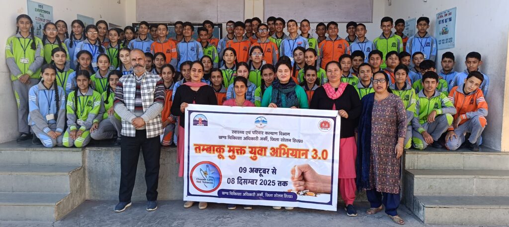 लक्षय पब्लिक स्कूल, अर्की में तंबाकू मुक्त युवा अभियान 3.0 तथा बच्चों के टीकाकरण का संयुक्त कार्यक्रम आयोजित किया गया। कार्यक्रम डॉ. मुक्‍ता रस्तोगी, ब्लॉक मेडिकल ऑफिसर, अर्की, जिला सोलन के कुशल नेतृत्व में सफलतापूर्वक संपन्न हुआ। कार्यक्रम का मुख्य उद्देश्य बच्चों एवं शिक्षार्थियों में तंबाकू के दुष्प्रभावों के प्रति जागरूकता फैलाना और समुदाय को तंबाकू मुक्त बनाने की दिशा में प्रेरित करना था।