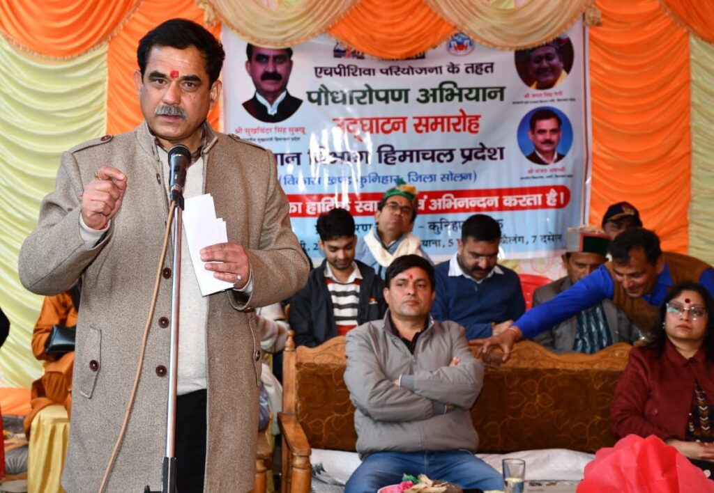 अर्की विधानसभा क्षेत्र के ग्राम पंचायत सेवड़ा चंडी के अंतर्गत पजीणा क्लस्टर में एच.पी. शिवा परियोजना के प्रथम चरण के तहत फल पौधरोपण कार्यक्रम का आयोजन किया गया। कार्यक्रम में अर्की के विधायक संजय अवस्थी ने बतौर मुख्य अतिथि शिरकत की और जापानी फल (पर्सिमन) के 3850 पौधे रोपित किए। इस अवसर पर विधायक संजय अवस्थी ने कहा कि बागवानी क्षेत्र हिमाचल प्रदेश की अर्थव्यवस्था की रीढ़ है और प्रदेश सरकार सेब के साथ-साथ अन्य उच्च मूल्य वाली फसलों के उत्पादन को बढ़ावा देने के लिए निरंतर प्रयासरत है। उन्होंने बताया कि पजीणा क्लस्टर में इस परियोजना से 36 किसानों को प्रत्यक्ष लाभ मिलेगा तथा 18 हेक्टेयर भूमि पर पौधरोपण किया जाएगा। उन्होंने कहा कि आधुनिक तकनीक अपनाकर बागवानी से बेहतर आय अर्जित की जा सकती है। अधिकारियों को निर्देश देते हुए उन्होंने कहा कि बागवानों को जलवायु के अनुरूप फलों की वैज्ञानिक जानकारी प्रदान की जाए, ताकि वे व्यावहारिक रूप से लाभान्वित हो सकें। संजय अवस्थी ने बताया कि ड्रैगन फ्रूट, कीवी, ब्लूबेरी और एवोकाडो जैसे फलों की बाजार में अच्छी मांग है और क्षेत्र में इनके उत्पादन की व्यापक संभावनाएं मौजूद हैं। विधायक ने क्षेत्र में हुए विकास कार्यों की जानकारी देते हुए बताया कि ग्राम पंचायत सेवड़ा चंडी में विकास कार्यों के लिए 84 लाख रुपये स्वीकृत किए गए हैं। बमेली–पजीणा–सरयाली–कोरकूफर मार्ग निर्माण के लिए 26 लाख रुपये, महिला मंडल पजीणा के भवन निर्माण हेतु 2 लाख रुपये तथा सामान क्रय के लिए 21 हजार रुपये देने की घोषणा की गई। साथ ही पजीणा से सौरा मार्ग निर्माण के लिए अनुमानित राशि के अनुरूप धनराशि उपलब्ध करवाने की भी घोषणा की। कार्यक्रम के उपरांत सरकार गांव के द्वार कार्यक्रम के तहत जन समस्याएं सुनी गईं और संबंधित विभागों को शीघ्र समाधान के निर्देश दिए गए। इस अवसर पर बाघल लैंड लूजर परिवहन समिति के प्रधान जगदीश ठाकुर, कांग्रेस पार्टी के सी.डी. बंसल, तुलसीराम शर्मा, मनोज भारद्वाज, बागवानी विभाग की उप निदेशक शिवाली ठाकुर, जिला समन्वयक देवेन्द्र अत्री, जल शक्ति विभाग अर्की के अधिशाषी अभियंता विवेक कटोच, अम्बुजा सीमेंट फाउंडेशन के प्रबंधक संजय शर्मा, महिला मंडल पजीणा एवं युवक मंडल पजीणा के सदस्य, विभिन्न विभागों के वरिष्ठ अधिकारी तथा ग्रामीण उपस्थित रहे।